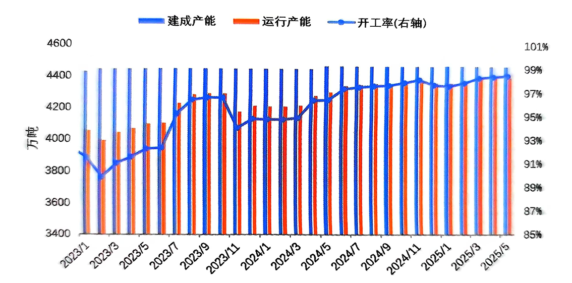 2025年5月,國(guó)內(nèi)電解鋁生產(chǎn)能力穩(wěn)中有增,截至5月底建成產(chǎn)能4467萬(wàn)噸/年,運(yùn)行產(chǎn)能4397萬(wàn)噸/年,環(huán)比增加4萬(wàn)噸/年。本月運(yùn)行產(chǎn)能增量主要來(lái)自青海等新增項(xiàng)目的釋放;云南等部分地區(qū)新建項(xiàng)目持續(xù)投產(chǎn),但產(chǎn)能指標(biāo)均來(lái)自在產(chǎn)產(chǎn)能的置換,部分省份的產(chǎn)能和產(chǎn)量將會(huì)受到影響,但整體生產(chǎn)能力理論上不會(huì)因此而發(fā)生變化。經(jīng)調(diào)整,4月份產(chǎn)量為362.4萬(wàn)噸;預(yù)計(jì)5月份產(chǎn)量為374.6萬(wàn)噸,同比增長(zhǎng)2.5%,日均產(chǎn)量12.08萬(wàn)噸,與上個(gè)月基本持平。