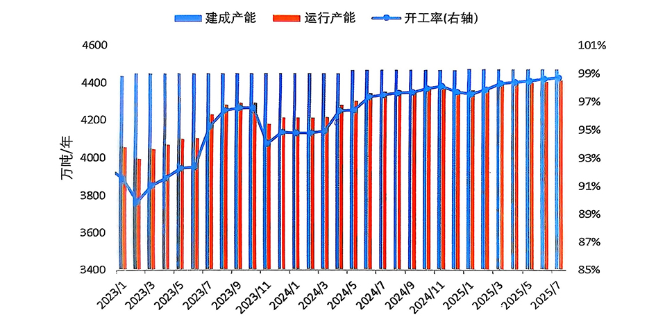 經(jīng)調(diào)整,6月份產(chǎn)量為364.5萬噸;預(yù)計(jì)7月份產(chǎn)量為376.9萬噸,同比增長1.5%,日均產(chǎn)量12.16萬噸,環(huán)比小幅增長0.07%。