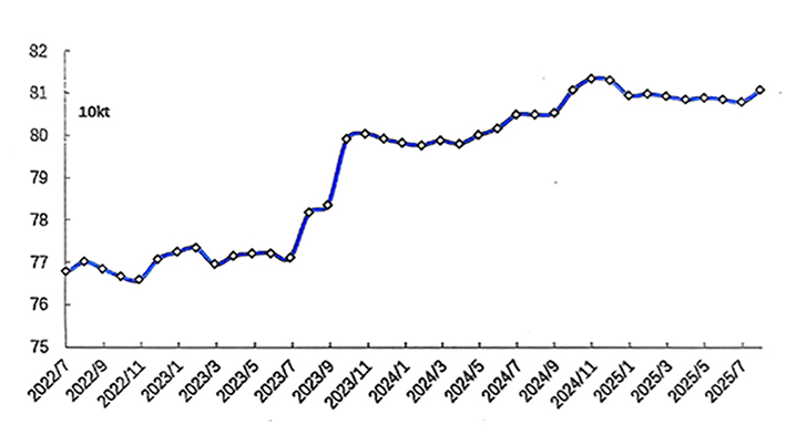 經(jīng)調(diào)整,8月份產(chǎn)量為376.4萬噸;預(yù)計(jì)9月份產(chǎn)量為364.4萬噸,同比增長1.1%,日均產(chǎn)量環(huán)比增加0.04%。