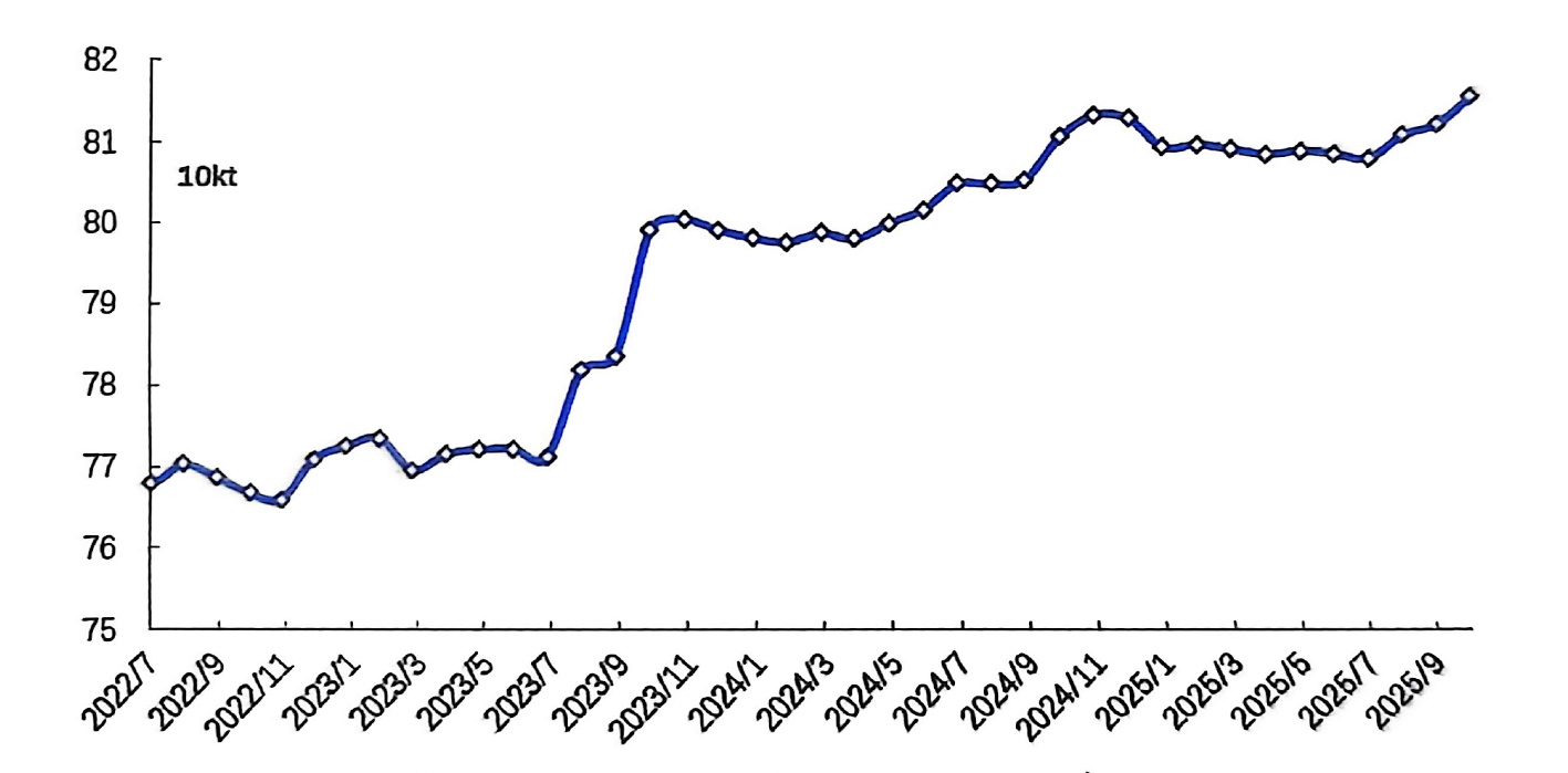 經(jīng)調(diào)整,10月份產(chǎn)量為376.6萬噸;預(yù)計11月份產(chǎn)量為364.2萬噸,同比增長0.8%,日均產(chǎn)量約12.16萬噸。